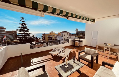Free wifi Nice apartment close to Santa Ana beach. The apartment is well furnished and has a large terrace with stunning sea and mountain views. The apartment has air conditioning, heating wifi and internet. It is very comfortable and well equipped. There is a communal pool, gardens, elevator and private parking. The apartment is close to bars, restaurants, shops and the marina, but is situated in a quiet street. You will find a taxi stand, bus stop and cash machine just in front of the door. You can also visit Parque Palomo, SeaLife, Benalmadena Pueblo and Marbella. It is also possible to visit Granada, Seville, Cordoba, Gibralter and Ronda. You can even visit Morocco!