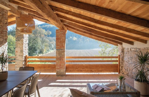 The views are the most spectacular thing about this house. La Eixida consists of two double bedrooms, each with a private bathroom, a kitchen and a living room with large glass openings that offer breathtaking views of the mountain and the natural surroundings. It also has a covered terrace, an outdoor patio, two covered garages and a space to store bicycles.