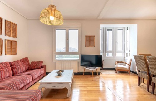 Beautiful 3 bedrooms and 2 bathrooms apartment located in Erandio, with frontal views of the Bilbao estuary and its industrial heritage. Located next to the Lutxana metro station that takes you in 10 minutes to the center of Bilbao. Decorated with great care, it has all the necessary equipment to feel at home. It has a total of five good quality beds: one double bed and four single beds. Ideal for couples, family and work.