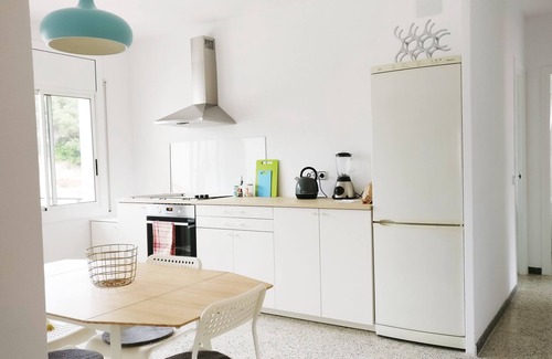 Open space attic with a big kitchen and living room with views of the Mediterranean sea and nature. The apartment is at a quiet location, 5 minutes walk to shops, food market and supermarket (that offers home delivery), restaurants, and spa with natural springs, and 10 minutes walk to the beach, and only 40 minutes away from Barcelona City Centre by train. The apartment is on the 5th floor and is accessible by stairs (there is no elevator).