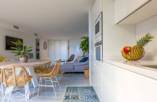 Our 90sqm roomy apartment is well equipped in a luxury building with marble floors. You can rest and sleep camly, hearing the sea. Stay in WIFI with your family, wash your clothes, cook your favorite dish and live like a local in Marbella.