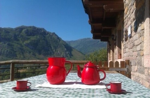 In particular Peñanes 1 has capacity for 4 people. It has equipped kitchen, dishwasher, living room with fireplace, 2 bathrooms, 2 double rooms overlooking a bread basket with more than 200 years old and the Monsacro and the Sierra del Aramo with its famous L'Angliru cycling port. Outside there is a terrace with a table and wooden benches and a green area with barbecue grill. To share with the other 2 houses there is parking and children's area.
