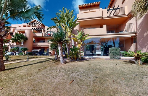 Lovely south facing ground floor 3 bedroom apartment that is fully equipped with: garden, garden furniture, terrace, washing machine, iron, internet (Wi-Fi), childrens area, tennis court, paddle tennis court, central heating, air conditioning throughout the house, communal swimming pool, covered parking, 1 TV, tv satellite (Languages: Spanish, English, French).