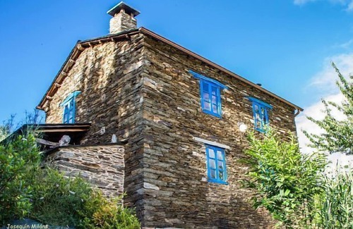 The house is a small , cozy retreat, where the air and village atmosphere with fine materials are respected , and all appliances "hidden" in brown cabinets , has hearth , wood stove with the seat back ( typical mountain Astur - Galaica ), bathroom , living room with a sofa bed and dining ; on the 1st floor, in the form of mezzanine are two beds , two closets , a desk and television sofas . All it surrounded by a garden of 600 meters with parking space within the property a couple of cars ...