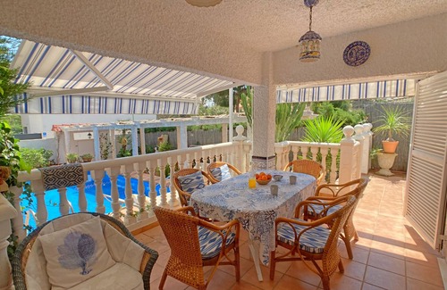 The large terrace surrounds almost the whole house and has a toilet in the back and a BBQ, perfect for family or friend's meetings.