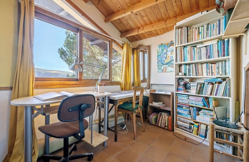 Located in Mont-ral, Casa Mariti is a 179 sqm artist's chalet that welcomes up to 10 guests with impressive mountain and sea views. You will find 4 bedrooms and 2 bathrooms, along with a private fully-equipped kitchen. This cozy retreat features Wi-Fi, TV, video on demand, fan, washing machine, and a dedicated workspace in the loft area. Family amenities include a baby bed, highchair, and shared toys and books for children. The chalet offers heating, a wood stove, board games, and a library for your comfort.