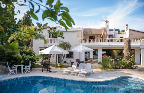 Beautifully furnished house with a lot of space in which several families can fill up well. , A total of 350 m2 house and 650 m2 garden with pool are at your disposal to enjoy your vacation to the fullest without any restrictions. On the upper floor there is on one side 2 bedrooms with double beds one with bathroom with shower and one with bathroom en suite, open kitchen with living-dining room, everything with its own entrance door and not connected to the ground floor inside. On the other hand, there is also a stand-alone apartment with a bedroom with a bathroom and a living room-kitchen as well as its own entrance door.