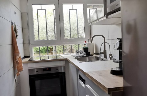 You have access to a well-maintained and spacious 1000 m² garden, equipped with security cameras, fully fenced and protected, with fruit trees, olive trees, parking area, and barbecue, which are shared only with the second apartment on the property. Both apartments are rented separately.