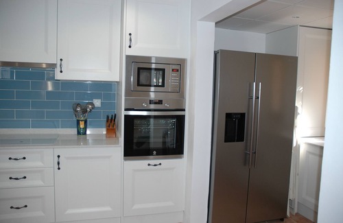 Access to the kitchen is via both the dining room and the sitting room. The kitchen is very large and fully fitted with dishwasher, oven and hob, large fridge freezer. There is utility area with washing machine and tumble dryer. The kitchen has a door to the terrace around the pool to fetch and carry out the food for those lovely al fresco lunches.