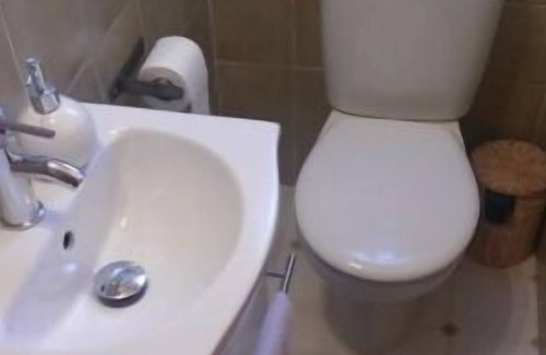 -A bathroom with hydromassage shower in the second floor and a toilet in the first floor.