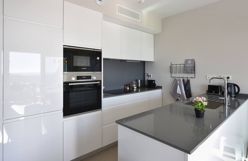 - open kitchen with electric hob, electric oven, microwave,table grill, dishwasher, refrigerator, freezer, Nespresso coffee machine, electric kettle and toaster, table grill for terrace