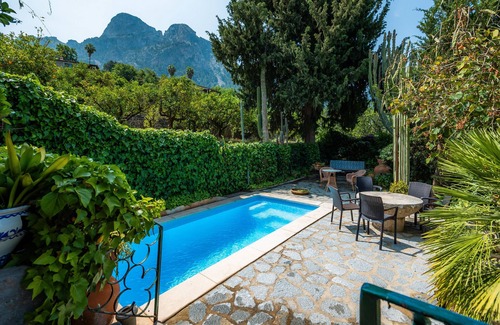Traditional Mallorcan house located in an idyllic area of Mallorca, in the Sóller valley, near the charming village of Fornalutx and the beautiful village of Binaraix. The house offers four spacious bedrooms (all with two single beds), as well as two bathrooms, a fully equipped kitchen, living room, entrance hall, and dining room, distributed over two floors. You will also find a cosy garden with a pool, private parking, several terraces, fans, and Wi-Fi.